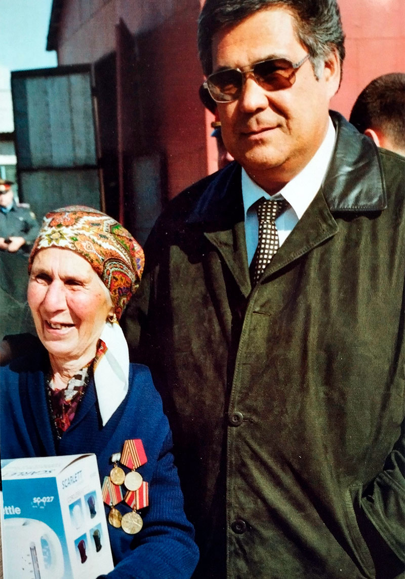 Страдзе С.А. поздравляет за трудовые заслуги ветерана ВОВ Шишлонова В.И.
