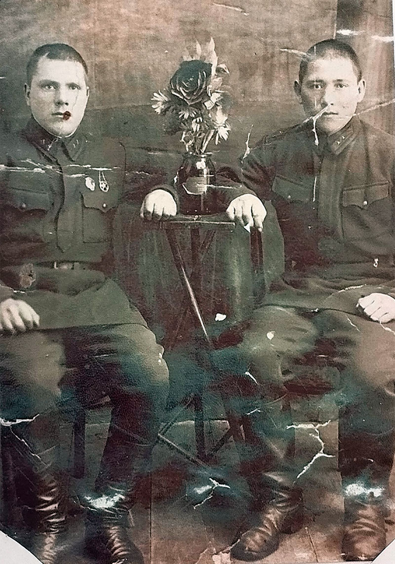 Салихов Гарифулла Шарипович (справа), рядовой, 1940-е годы
