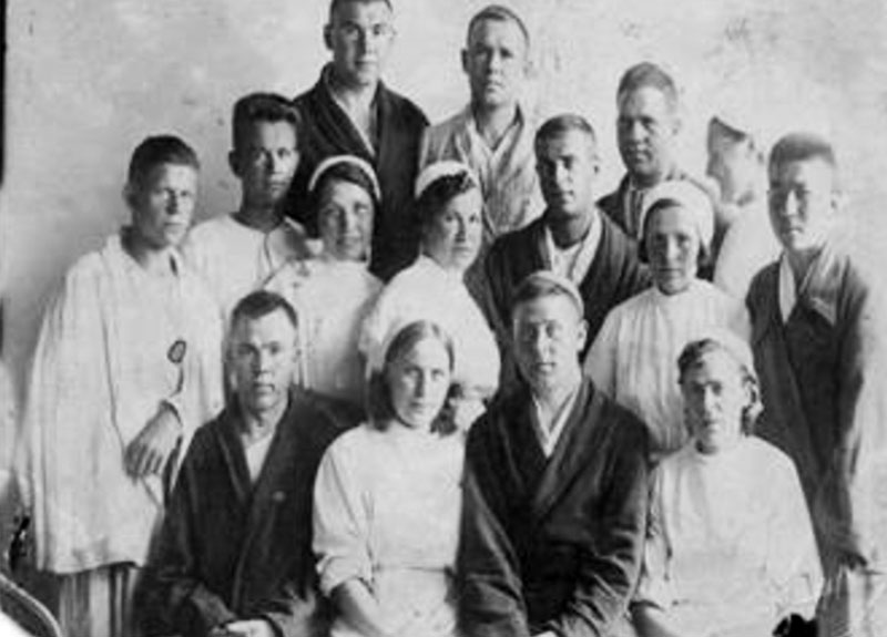В госпитале. Скрипников В.А.в центре третьего ряда