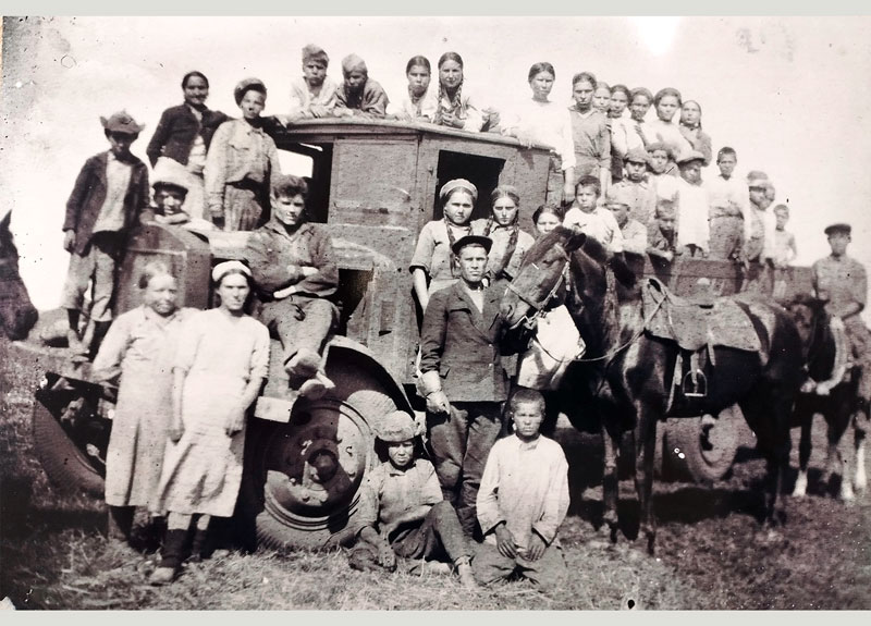 В колхозе. Бану пятая слева среди ребятишек на кузове.