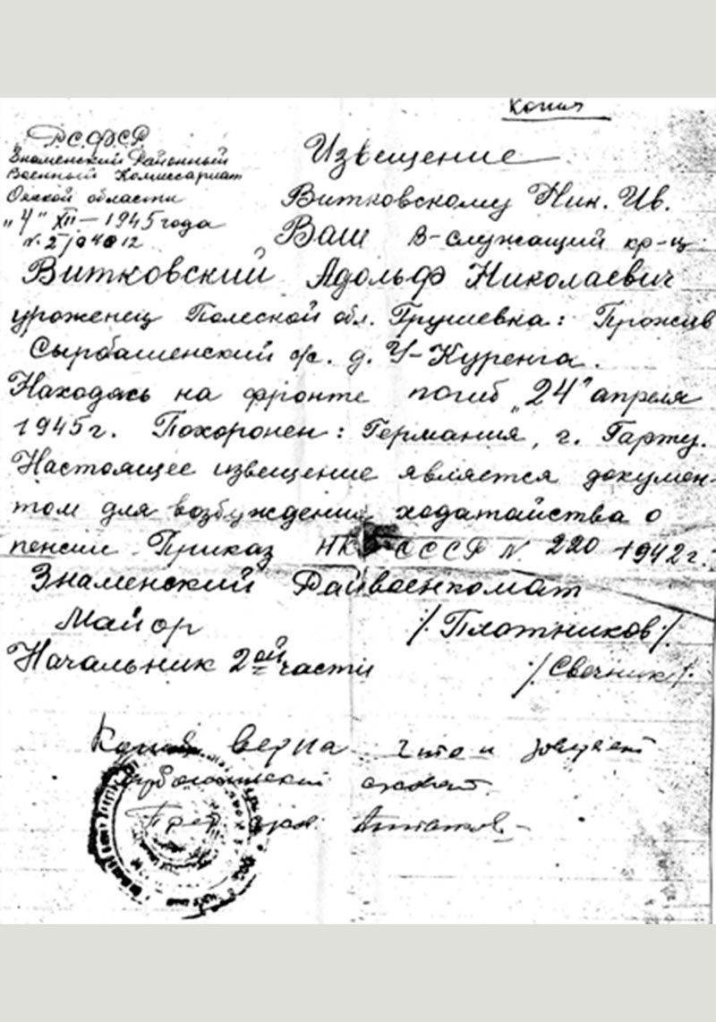 Удостоверение о военной службе от 24.09.1944 г. (обратная сторона)