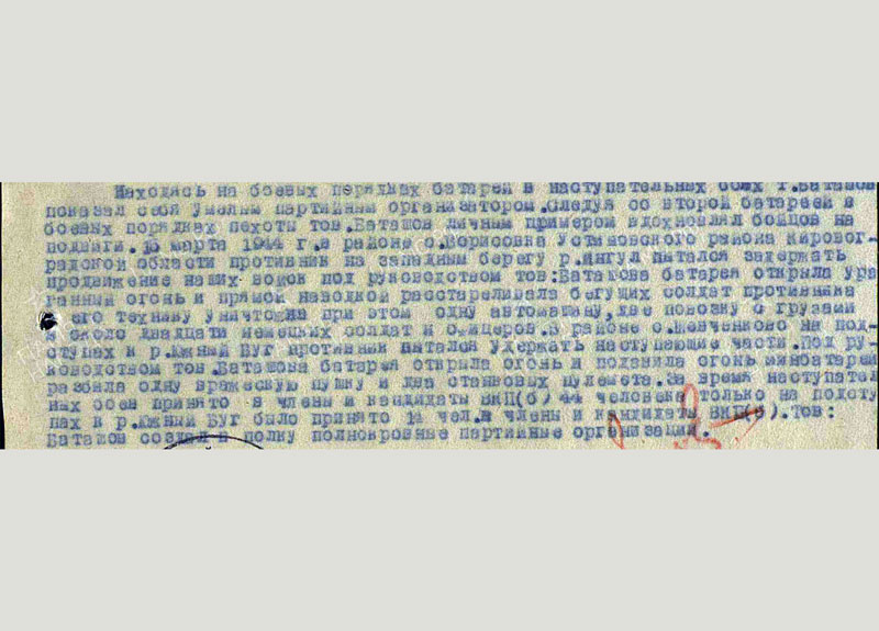 После войны: после войны Иван Григорьевич продолжал службу в армии, сменив несколько гарнизонов. Юрга оказалась его последним местом службы. С 1959 года Иван Григорьевич – подполковник в отставке. Свою мирную трудовую деятельность на Юргинском машиностроительном заводе он начал заведующим кабинетом политпросвещения парткома. Затем был помощником директора по соцкультбыту, заместителем секретаря парткома, начальником отдела кадров. За свою трудовую деятельность награжден орденом Октябрьской революции. С 1974 по 1985 год И. Г. Баташов возглавлял заводское радиовещание.