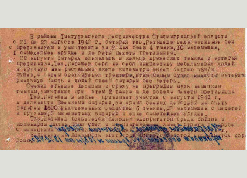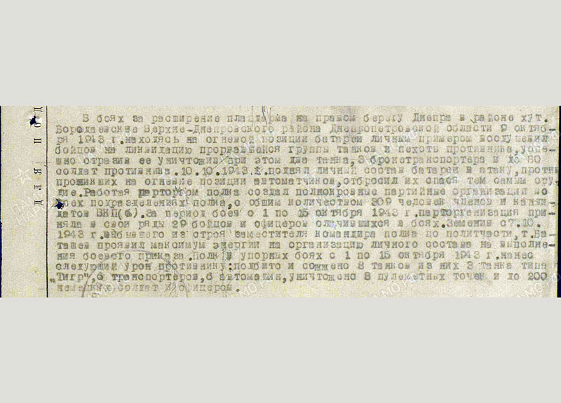 Воинская часть: 153-й гвардейский артиллерийский полк, входящий в состав 73-й гвардейской стрелковой Сталинградско-Дунайской Краснознамённой дивизии, принимавшей участие в Великой Отечественной войне в составе 7-й гвардейской армии, 57-й армии, 64-й армии.