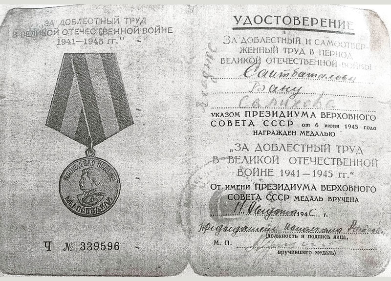 Удостоверение к медали «За доблестный труд в годы Великой Отечественной войны 1941-1945 гг.