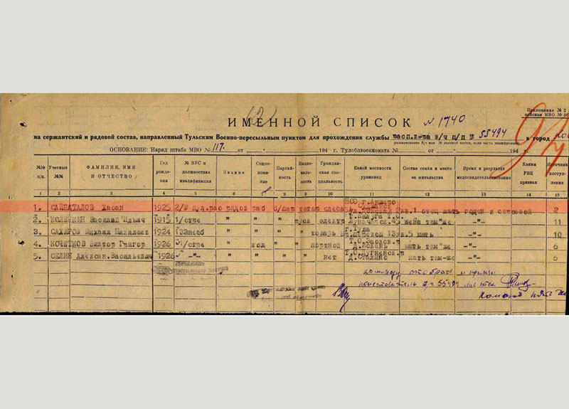 Призван на фронт: в 1943 году призван Анжеро-Судженским ГВК.