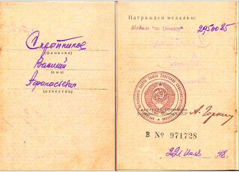 Удостоверение к медали «За доблестный труд в Великой Отечественной войне 1941-1945 гг.»