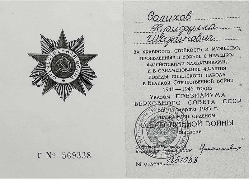 Удостоверение к ордену «Отечественной войны II степени». 1985 г.