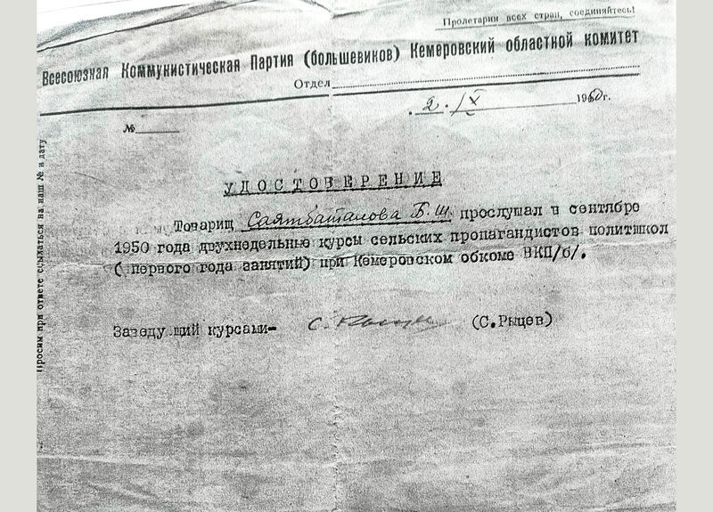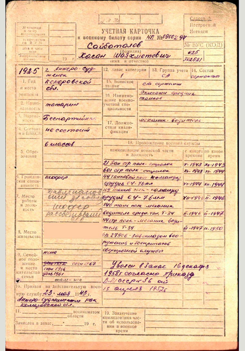 Учетная карточка к военному билету Сайбаталова Х. Ш.