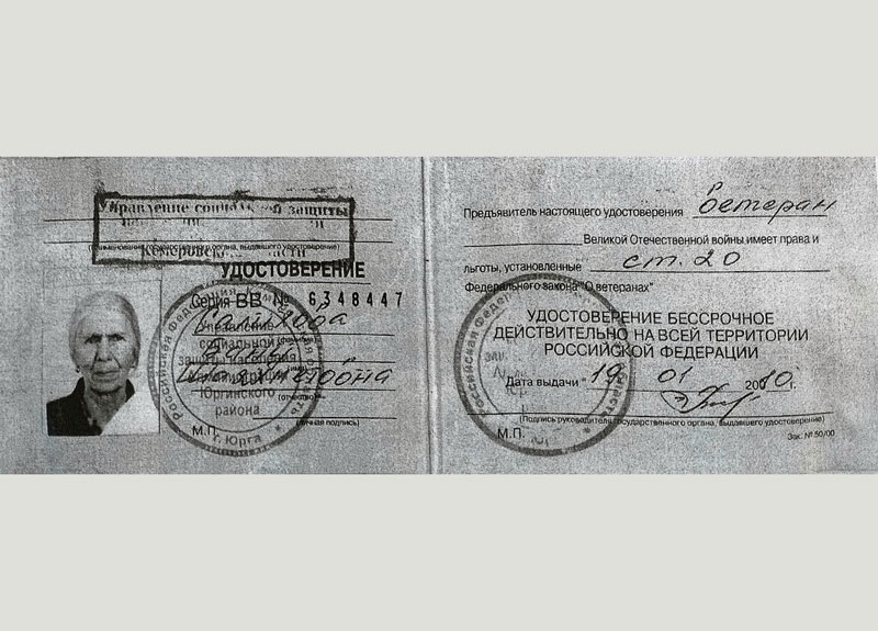 Удостоверение Седовой А.В. на медаль Ветеран труда
